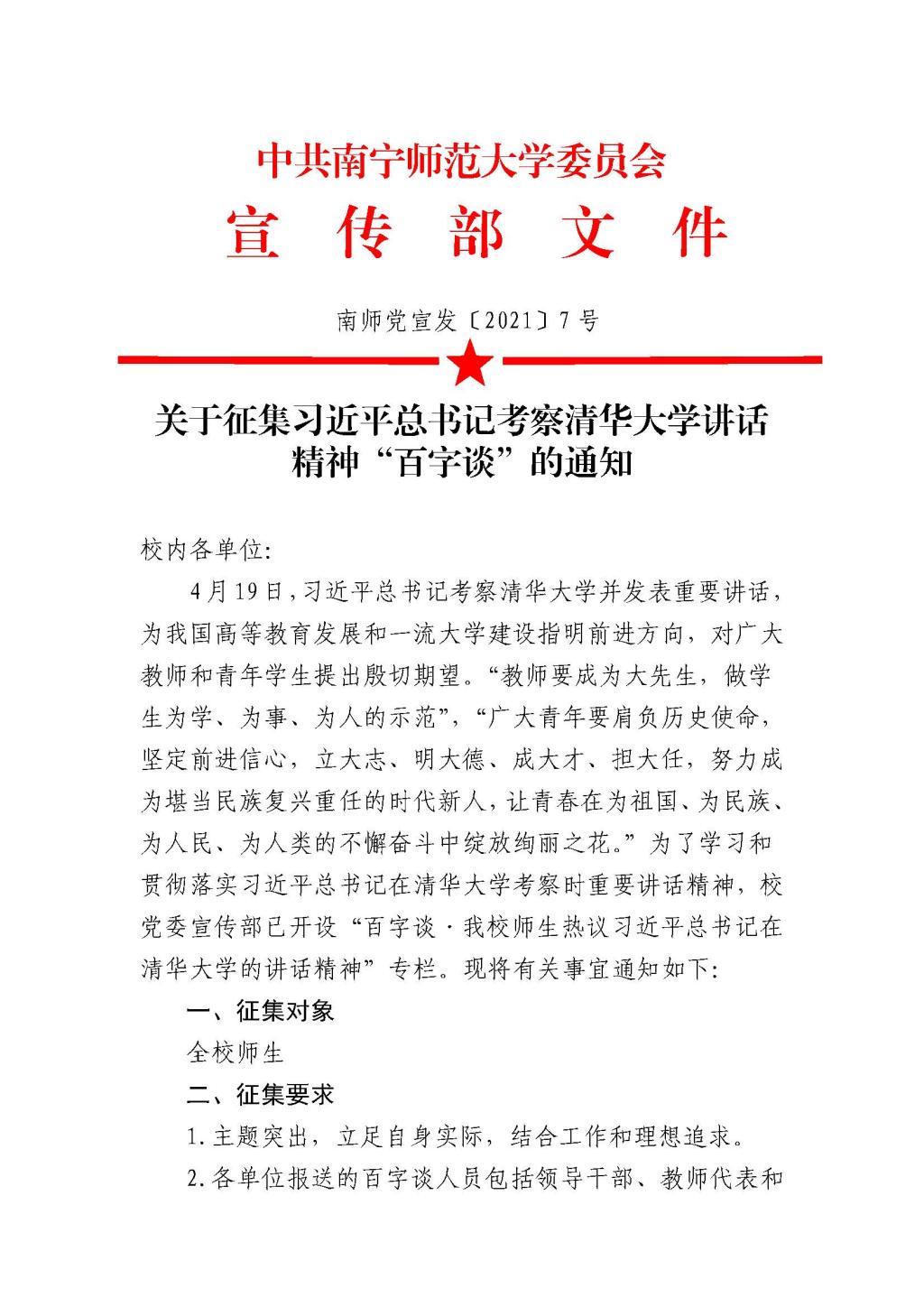 beats365官网 网页版征集习近平总书记考察清华大学讲话精神“百字谈”的通知