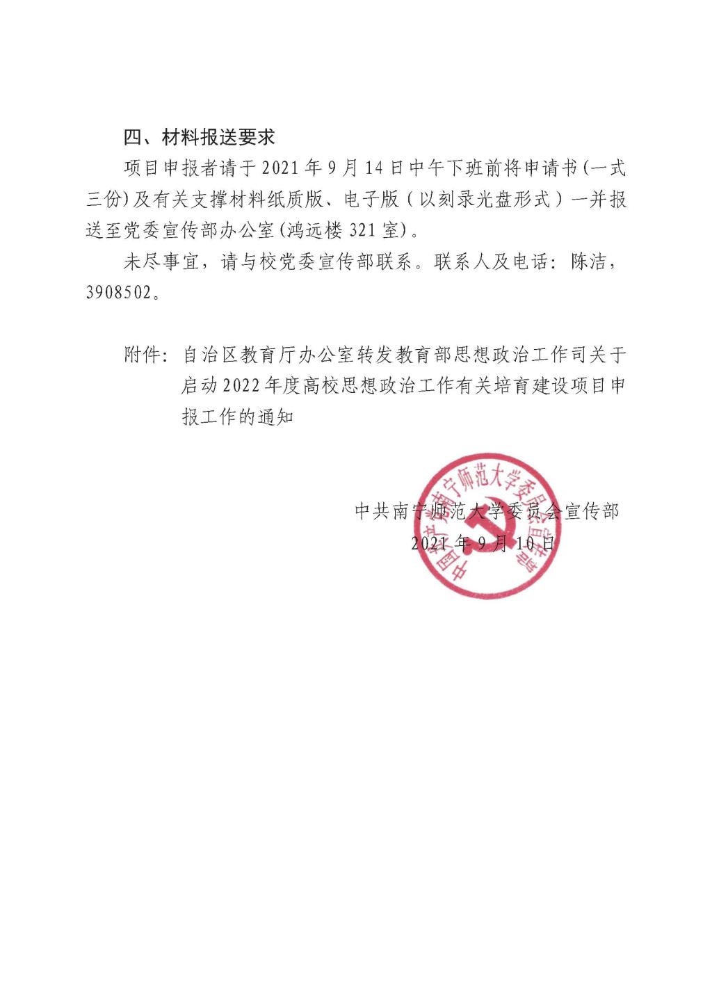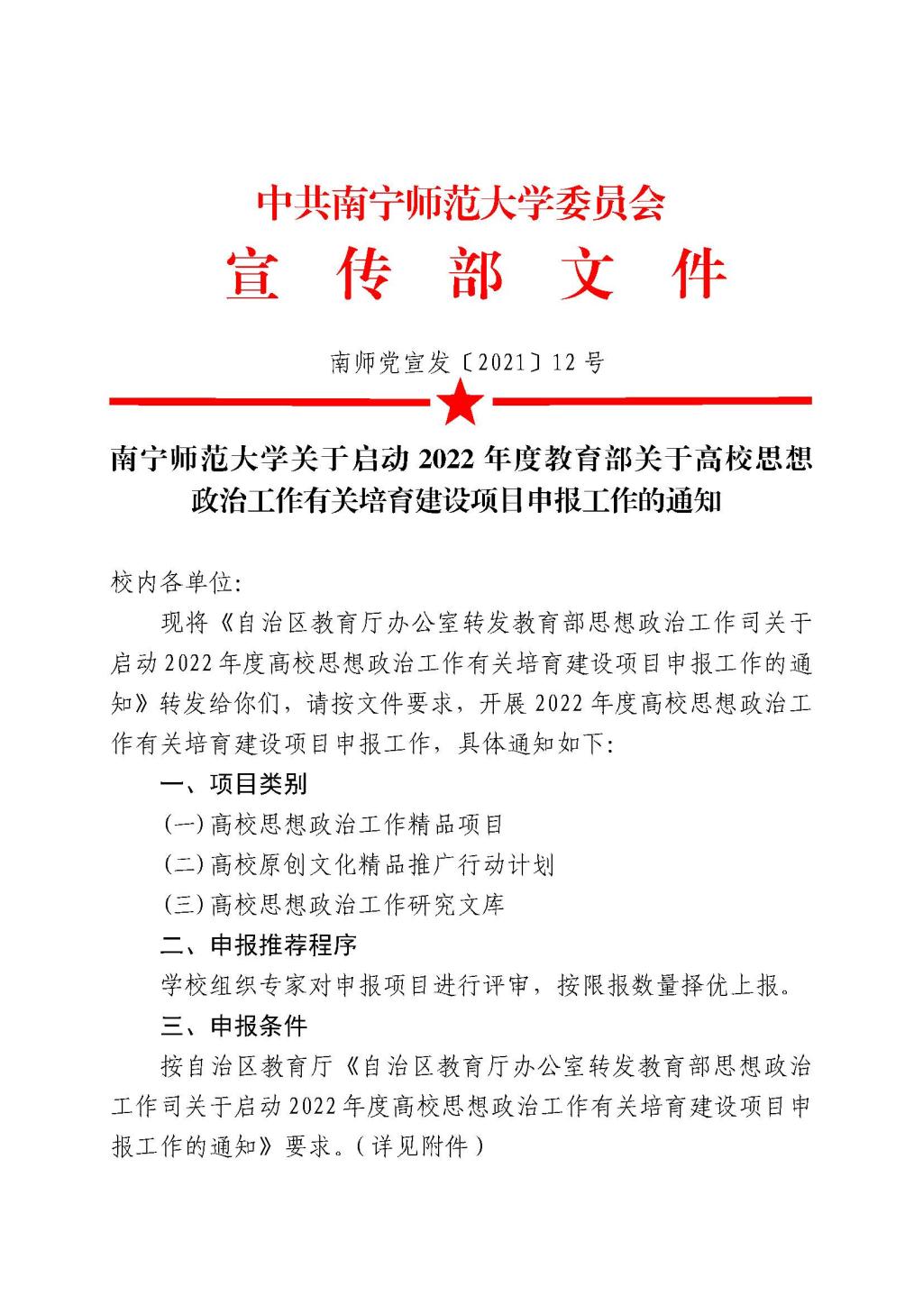 南宁师范大学beats365官网 网页版启动 2022 年度教育部beats365官网 网页版高校思想政治工作有关培育建设项目申报工作的通知