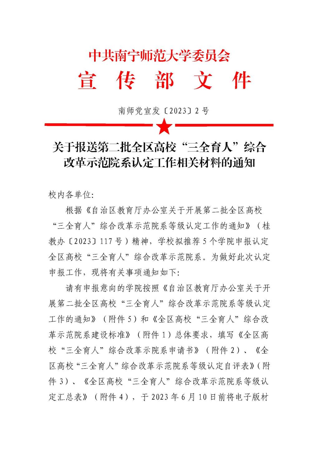 附件5:桂教办〔2023〕117号自治区教育厅办公室beats365官网 网页版开展第二批全区高校“三全育人”综合改革示范院系等级认定工作的通知.pdf