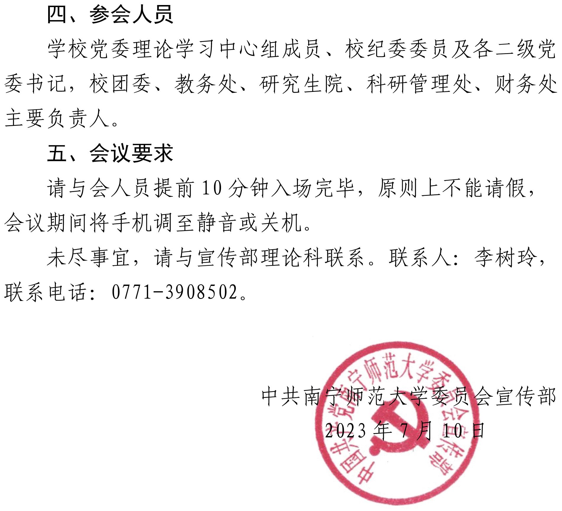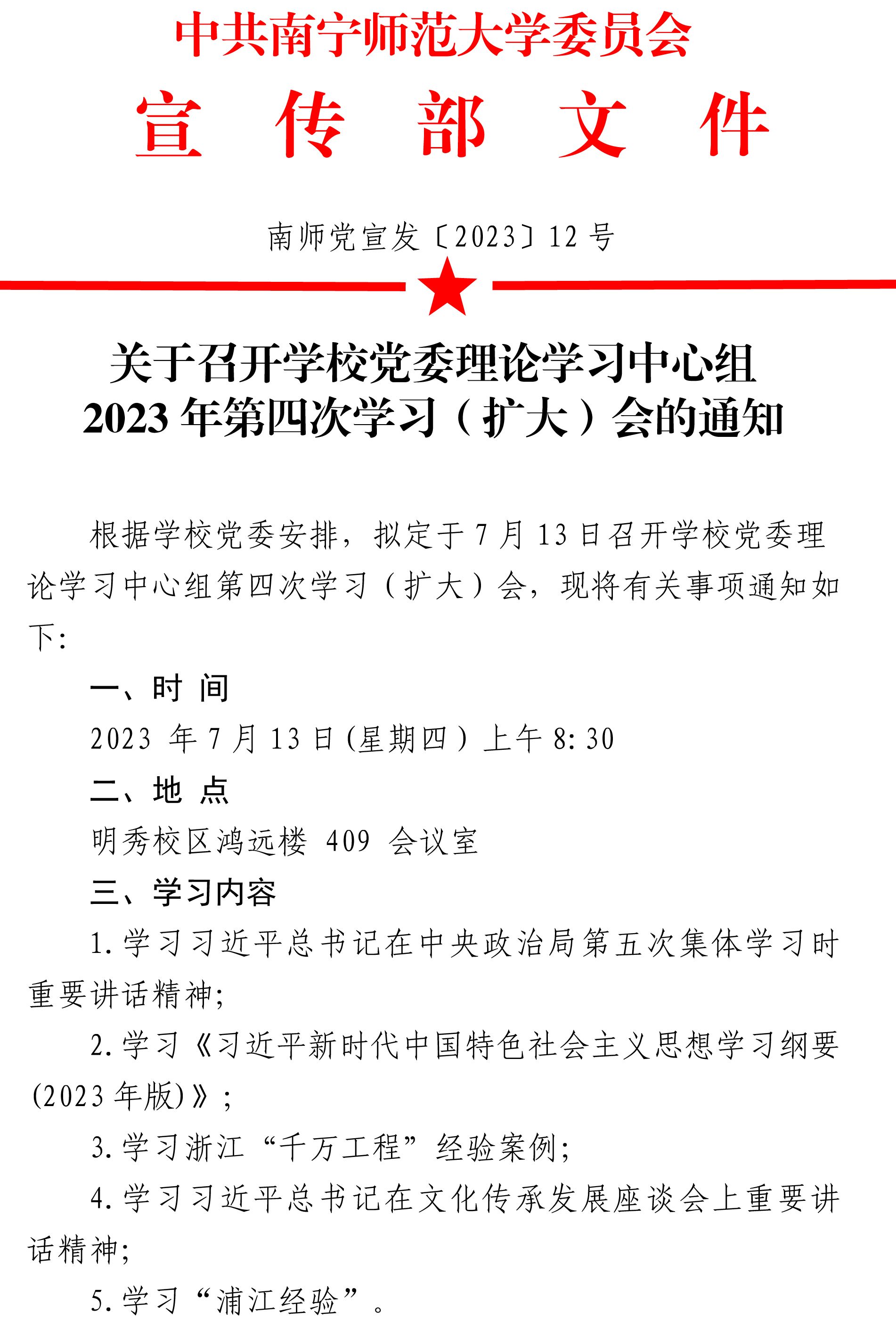 南师党宣发〔2023〕12号 beats365官网 网页版召开学校党委理论学习中心组2023年第四次学习(扩大)会的通知