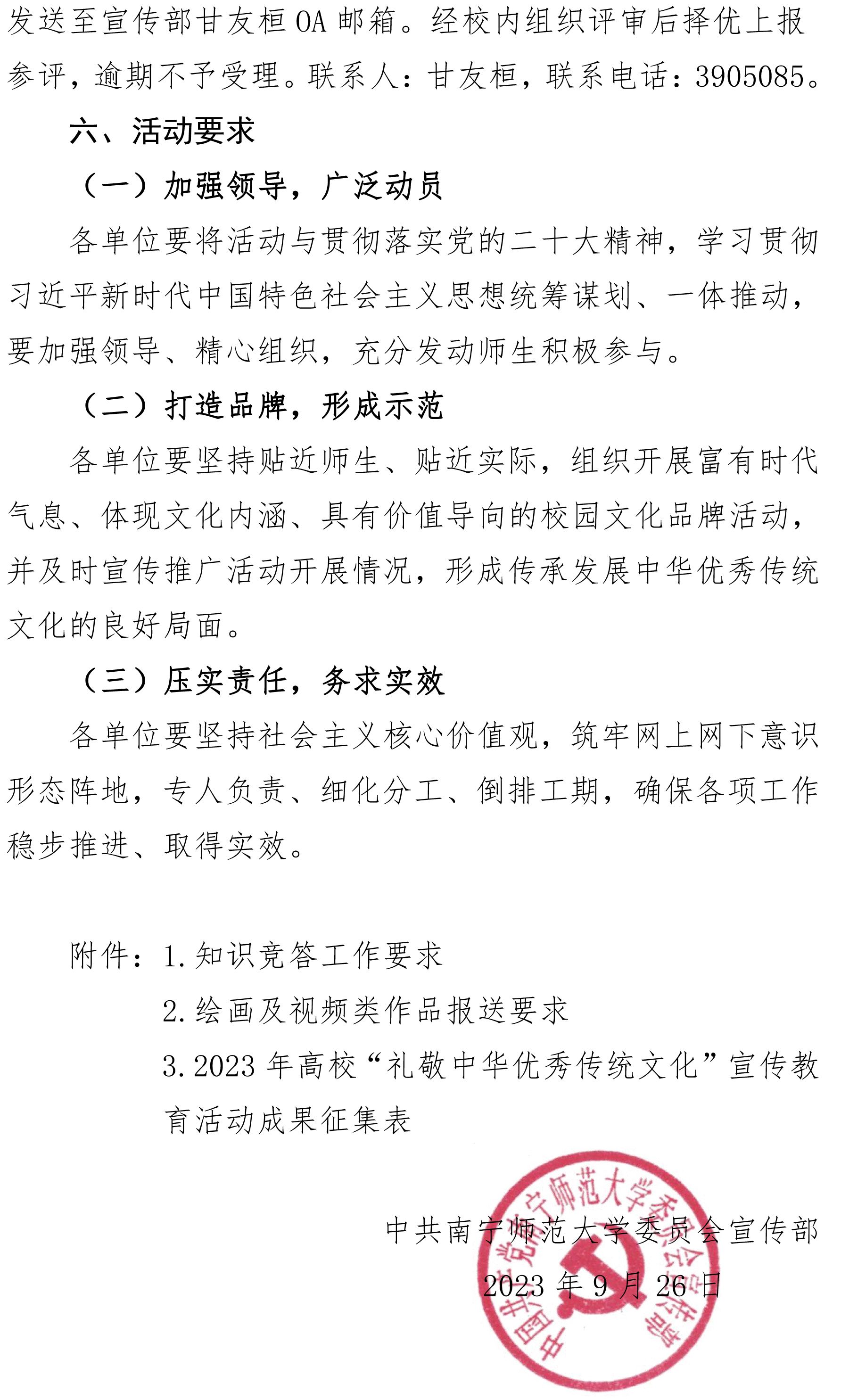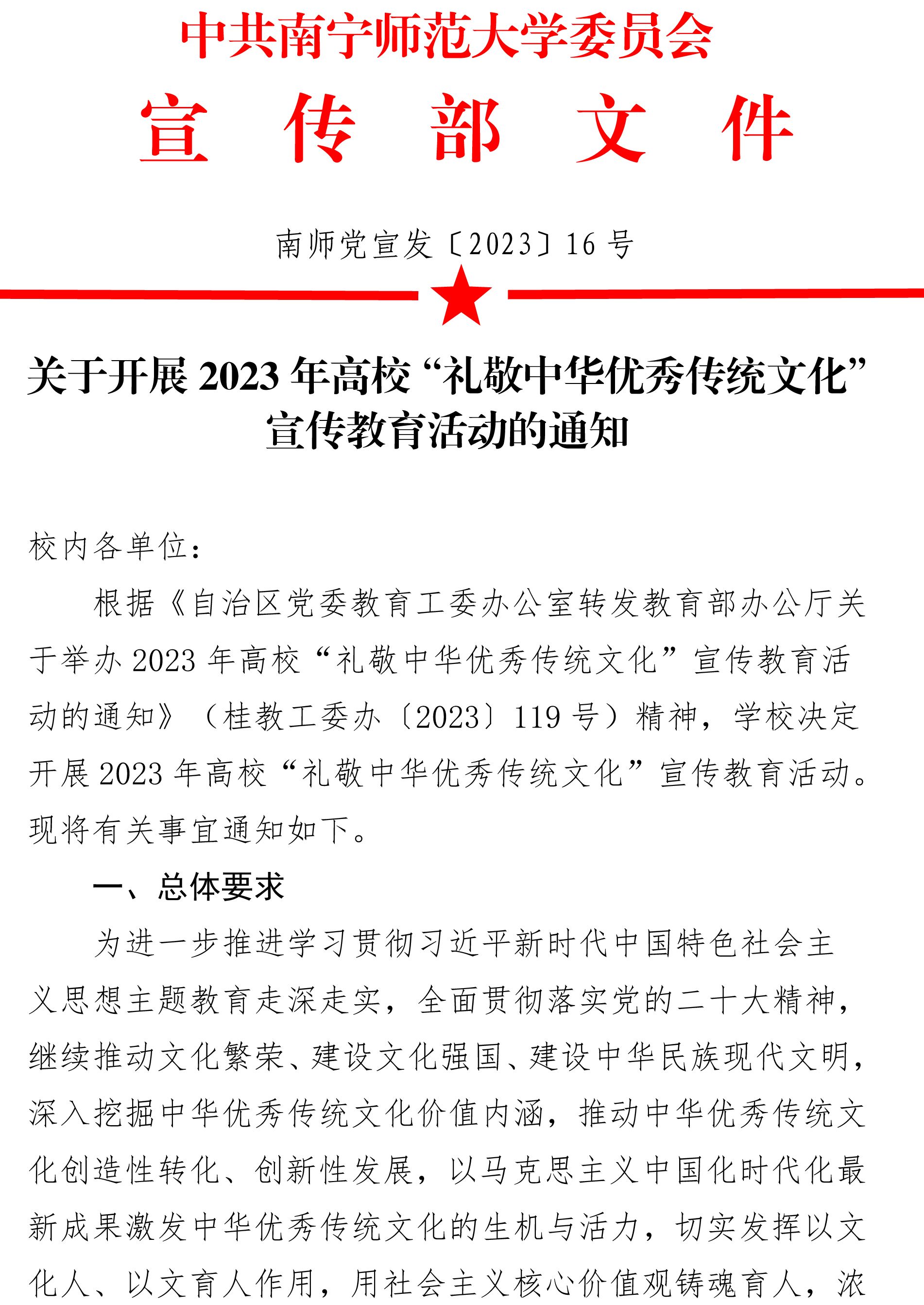 南师党宣发〔2023〕16号 beats365官网 网页版开展2023年高校“礼敬中华优秀传统文化”宣传教育活动的通知